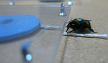 Her er en av humlene i aksjon under forskningsprosjektet. Foto: Sylvain Alem og Xingfu Zhu.