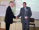 Styreleiar Bjørn Berge takkar avtroppande direktør Bjørn Stave for innsatsen.