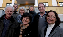 Prosjektgruppa var samla på Høgskulen i Volda 31.januar. Bak frå venstre: Øystein Salhus, Henny Koppen, Magnar Åm og Kristian Wedberg. Framme frå venstre: Magne Espeland, Elizabeth Oltedal og dekan på Avdeling for kulturfag Aud Folkestad.