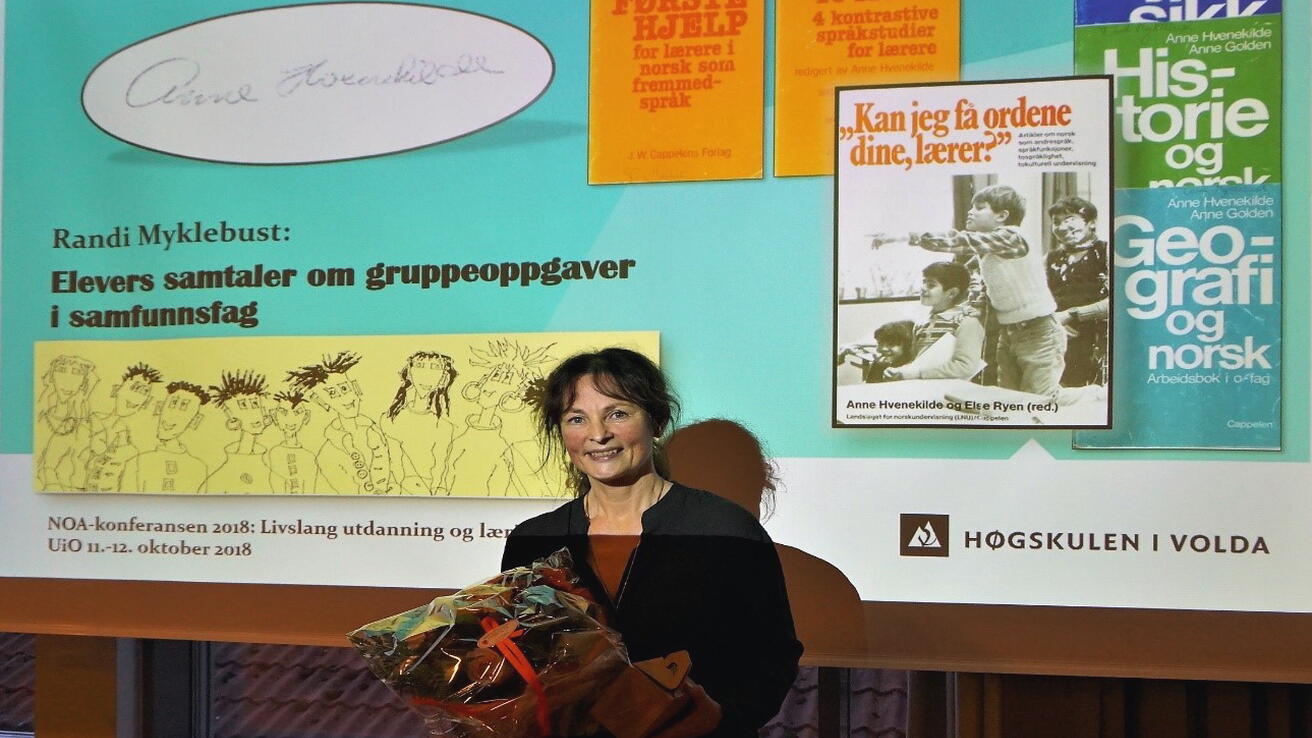 På den åttande nasjonale forskingskonferansen om norsk som andrespråk (NOA-konferansen) lagt til Universitetet i Oslo 11.-12. oktober, vart Randi Myklebust ved Høgskulen i Volda tildelt Anne Hvenekilde-prisen 2018.