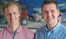 Jens Standal Groven og Kristian Fuglseth ved Høgskulen i Volda. Foto: Gaute Hareide.