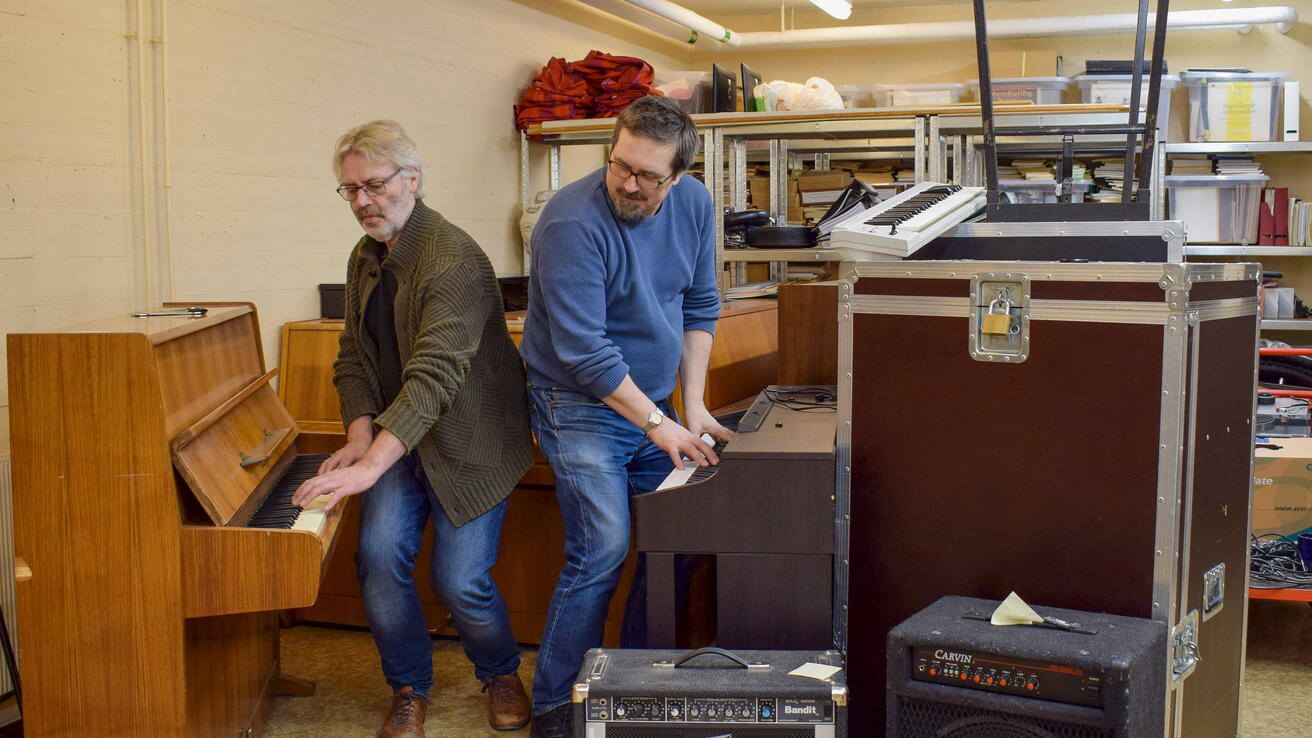 Salhus fortel at blant det som skal auksjonerast bort er fleire akkustiske piano, ulike keyboards, datakeyboards (midikontrollerear), bass- og gitarforsterkarar og gamle trøorgel.