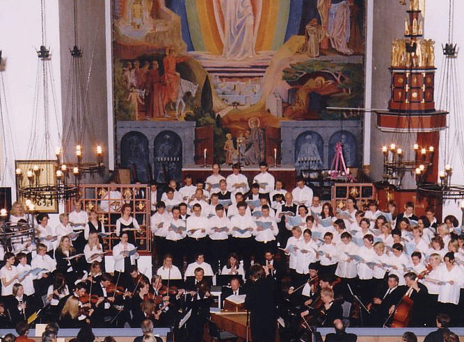 Koret har med seg eit orkester som består av 21dyktige musikarar, dei fleste med lokal tilknytning. Solister er Helga Botn, Kari Aske Osnes, Lars Ivar Nordal og Alf K. Vatne. Alle disse er songarar på høgt nasjonalt nivå. Særleg interesse knyter det seg kanskje til den unge tenoren Lars Ivar Nordal frå Volda som er eit relativt nytt namn for mange. Han studerer for tida song i Berlin. Koret ved Høgskulen tel om lag 70 songarar med fin fordeling mellom stemmegruppene. Volda Kyrkje førstkomande laurdag kl 18.00 og søndag kl 20.00. Billettsalg ved inngangen.