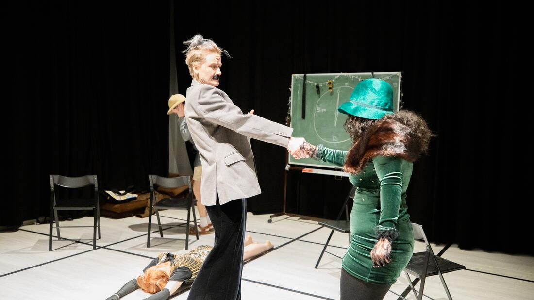 I Brechtsalen på Kaarstad forbereder første klasse på Bachelor i teater og drama seg på gjennomføring av årets første Husteater. De arbeider med absurd teater og gjør scener fra Den Skallete Sangerinnen og Privattimen av Ionesco og Kong Ubu av Alfred Jarry.