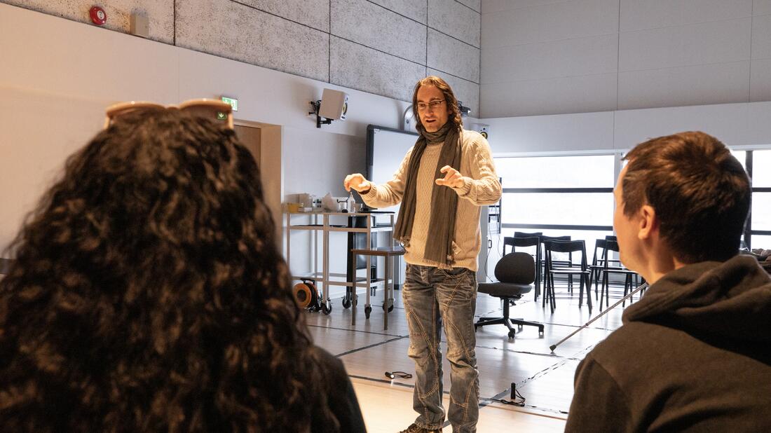 Teater og drama-studentene stråler av glede av at de får være aktive i teatersalene og spille mot hverandre.