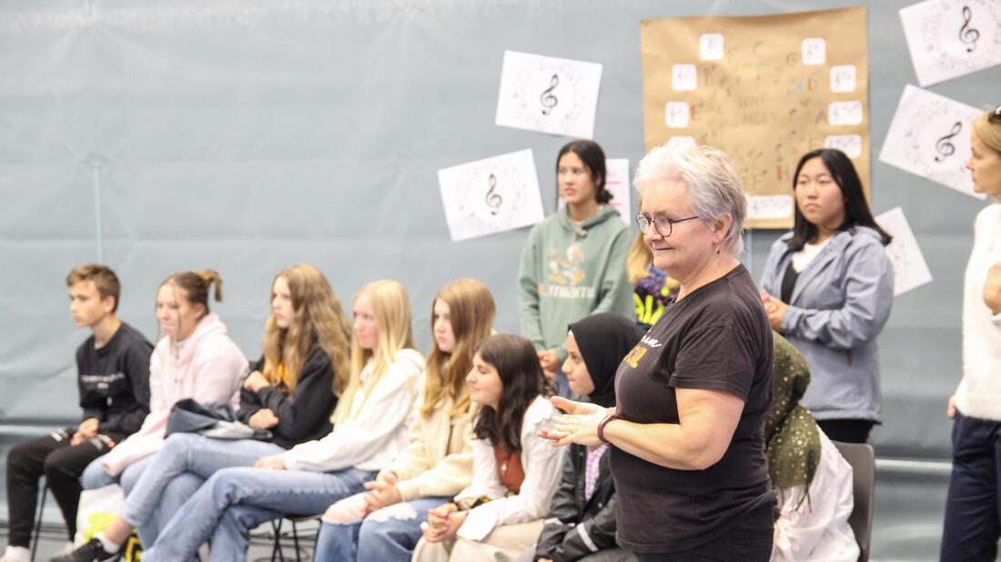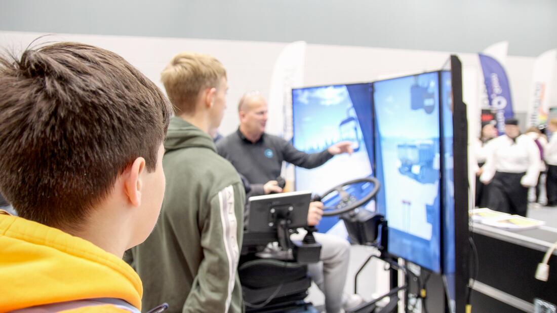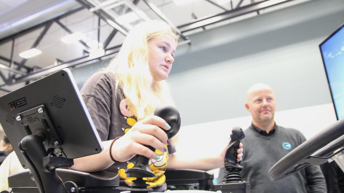 Ein tiandeklassing prøver ein gravemaskinsimulator.