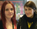 - Vi har eit lite introduksjonskurs i norsk, men no ønskjer vi å læra meir, strålar Ivana Bisnjak (t.v.) og Lea Vidakovic. Dei har vore animasjonsstudentar ved Høgskulen i Volda sidan 2007, og skal vere her fram til 2009. - Dersom nokon i Volda eller omegn har lyst til å vere fadrar og lære oss norsk blir vi veldig glade, seier dei.
