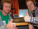 Kjetil Kjær Andersland og Øyvind Strand Endal gjev tommelen opp for Radio Volda si spesialsending om det amerikanske primærvalet natt til onsdag. Saman med dei er også Daniel Drageset, Åge André Breivik, Vilde Hjertholm Lunde, Håkon Boye Bergum, Hanne Marie Molde, Eirin Aardal og Ingrid Kornelia Sunde, alle 3. klasse radiojournalistikkstudenter.