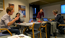 Prorektor Jens Standal Groven (f.v.), førsteamanuensis Ana Luisa Sanchez Laws, høgskulelektor Tormod Utne og seniorrådgiver Lars Julius Halvorsen var her i innspurten med søknadsskrivingen til Senter for fremragende utdanning (SFU).