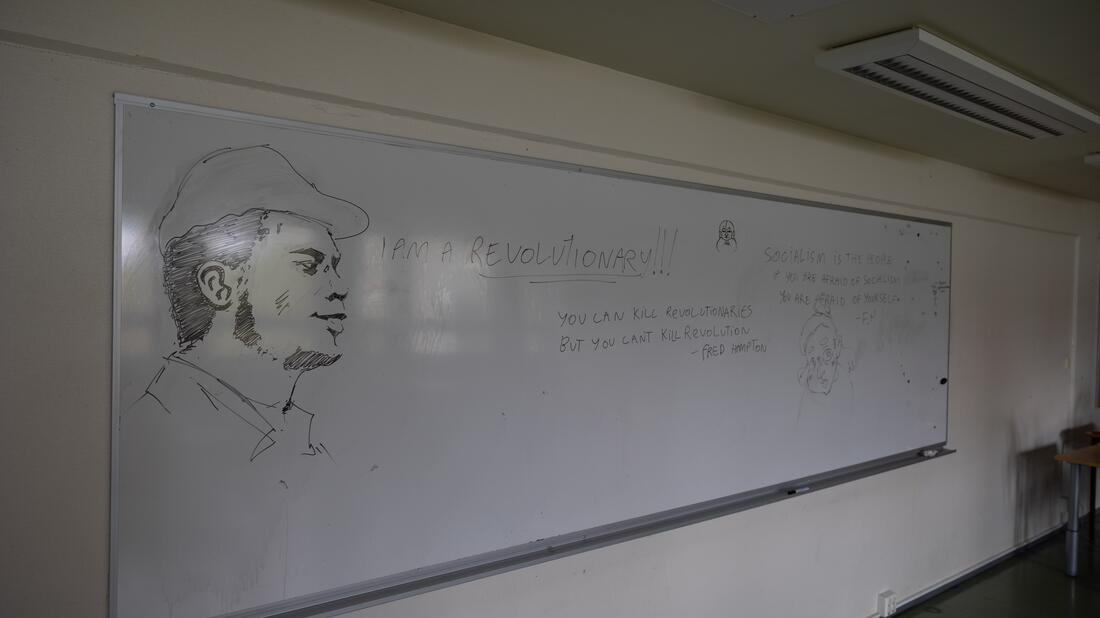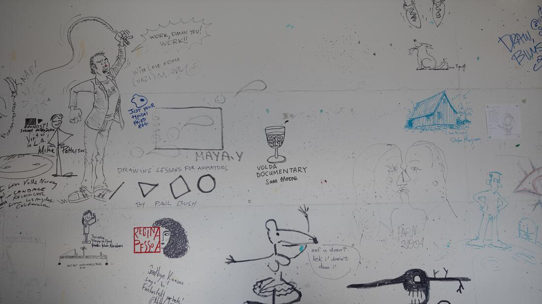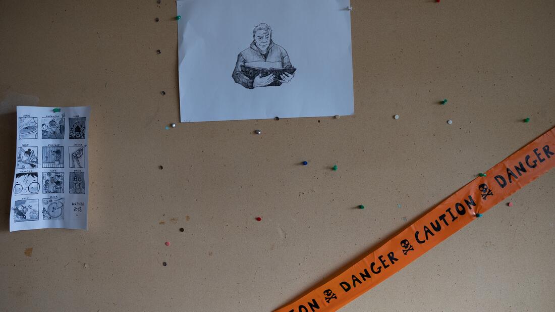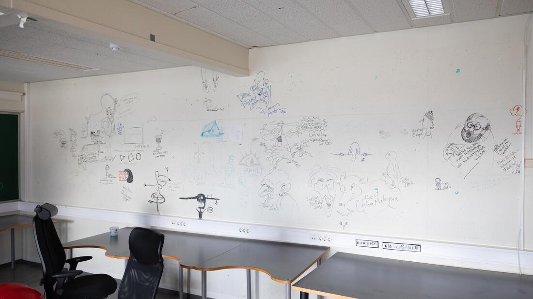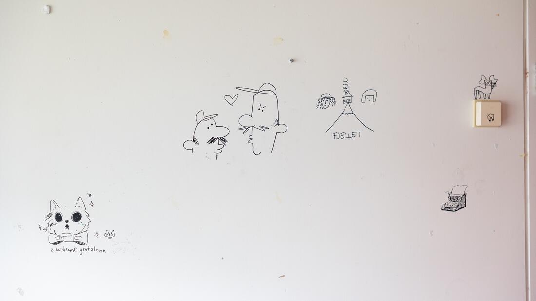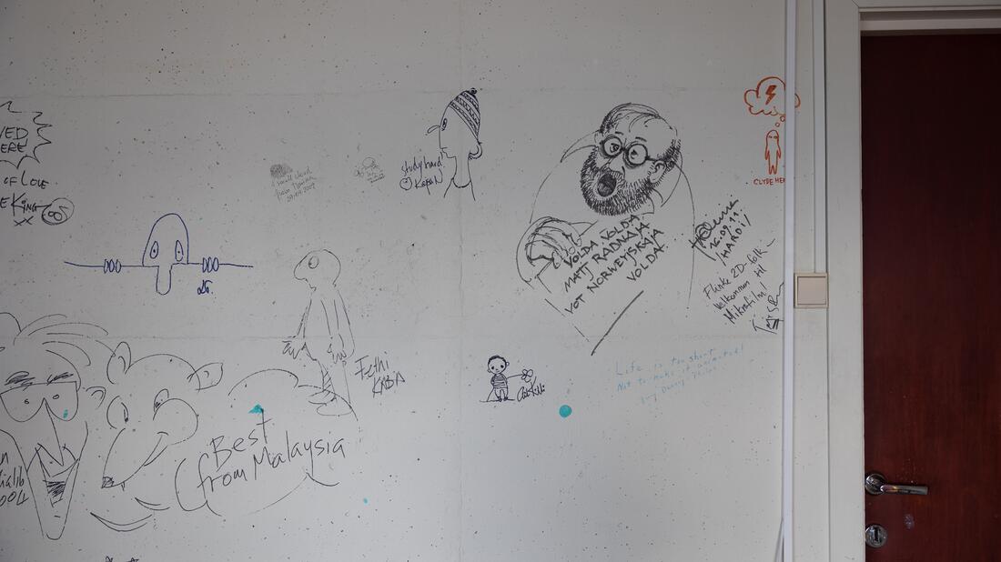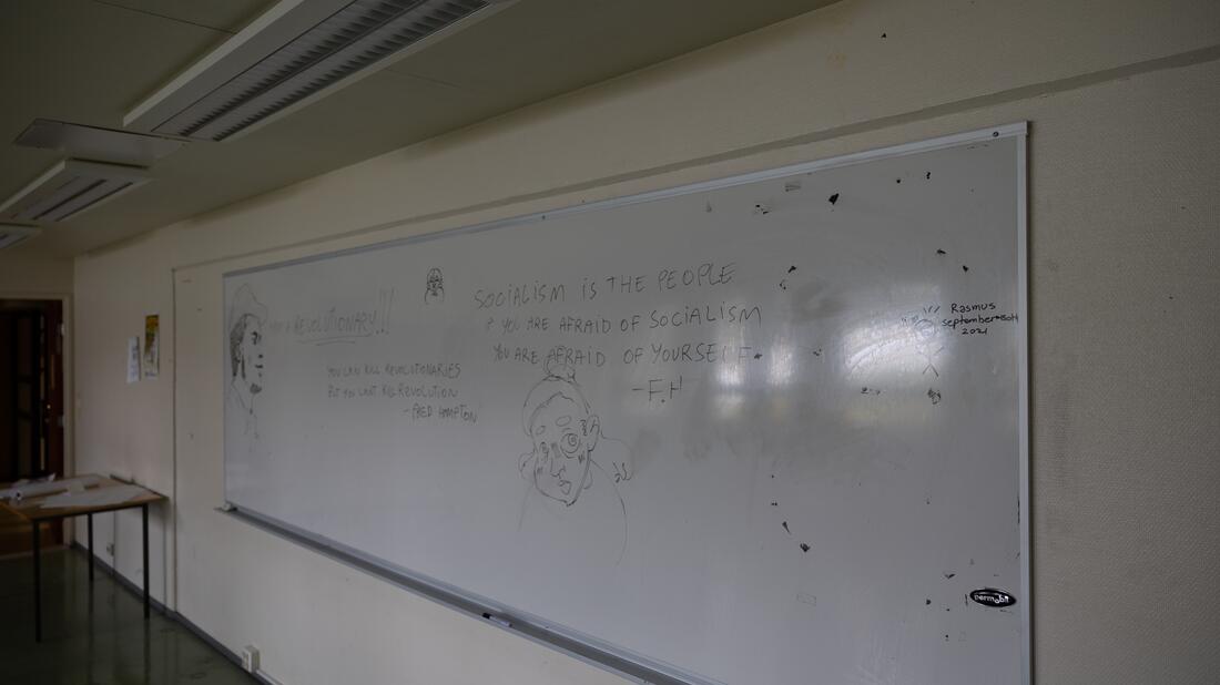 HVO har også dokumentert befaringen og ting som har blitt stående på tavler og veggene. Dette kan sees i bildekarusellen under.