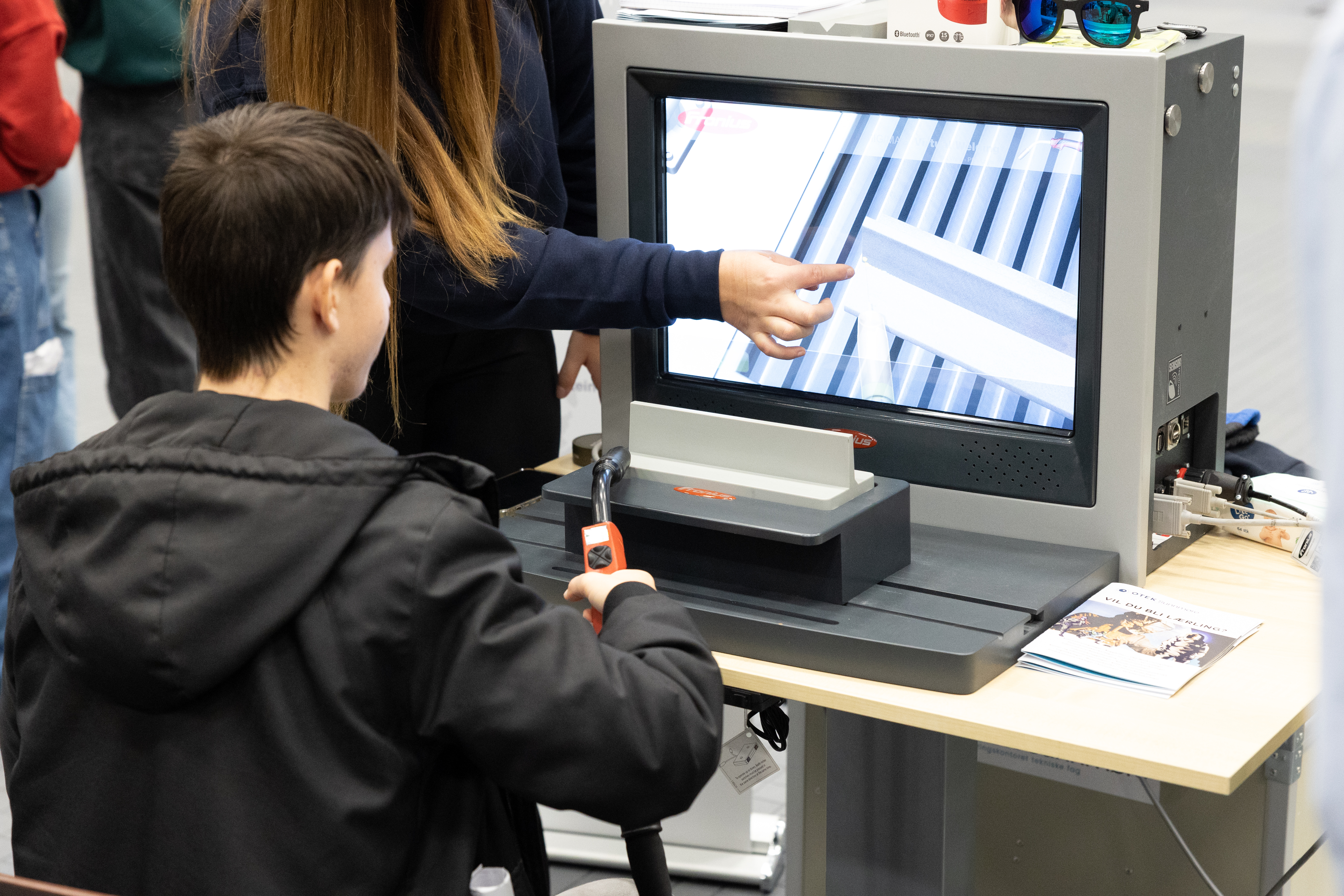 Elida (15) var en av de unge som kikket ivrig rundt seg på de ulike standene for å få inspirasjon. Da hun besøkte standen til Transportbransjens opplæringskontor fikk hun bryne seg på kjøreskolesimulator der målet var å manøvrere en storbil rundt kjegler digitalt.