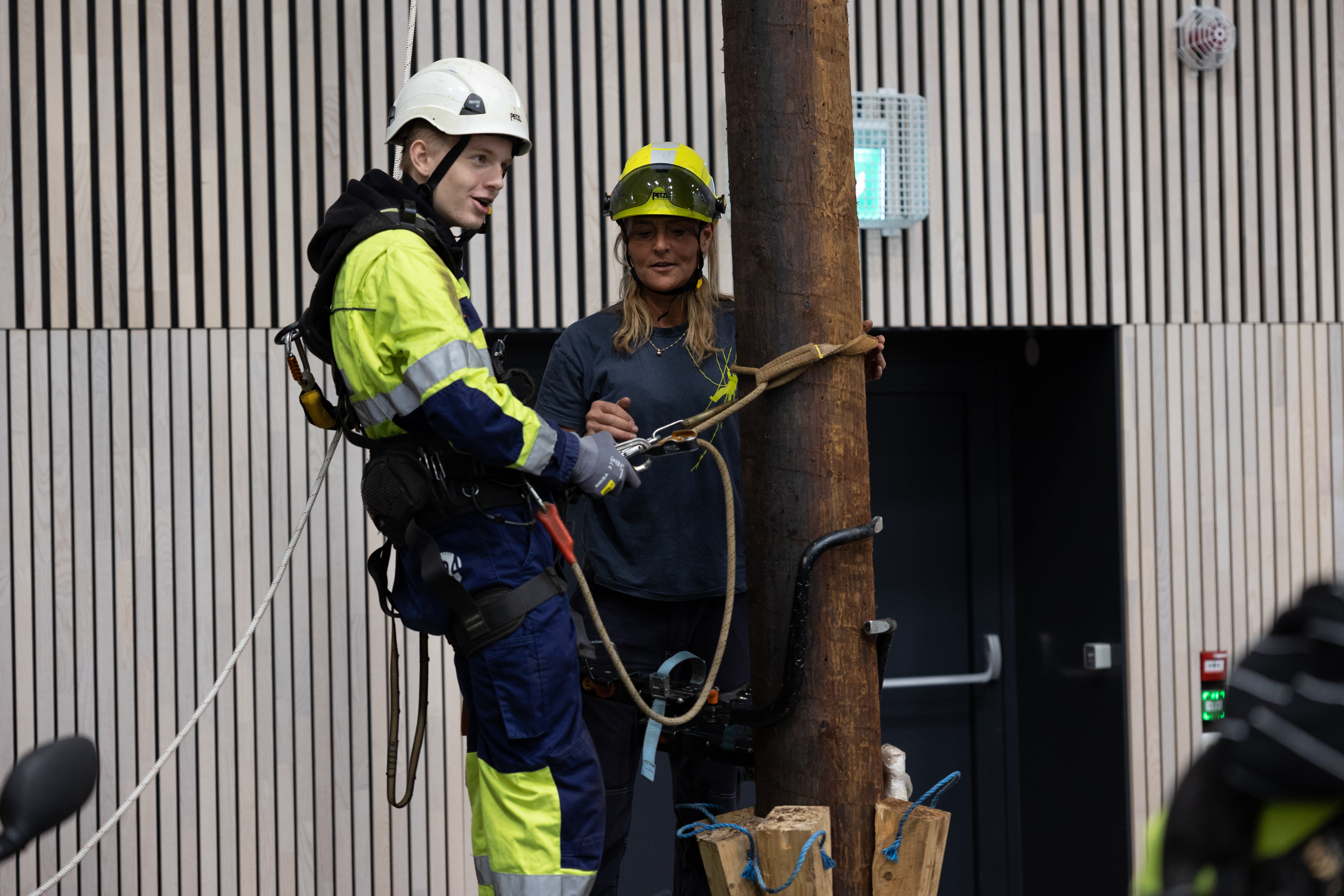 – Jeg aner ikke! Jeg har venner som er håndverkere og de har veldig grove fingre med ulike skader fra å drive med yrket. Kanskje jeg kan bruke hansker? Tegning er vel mer min greie, men det var også gøy å klatre i stolpe.