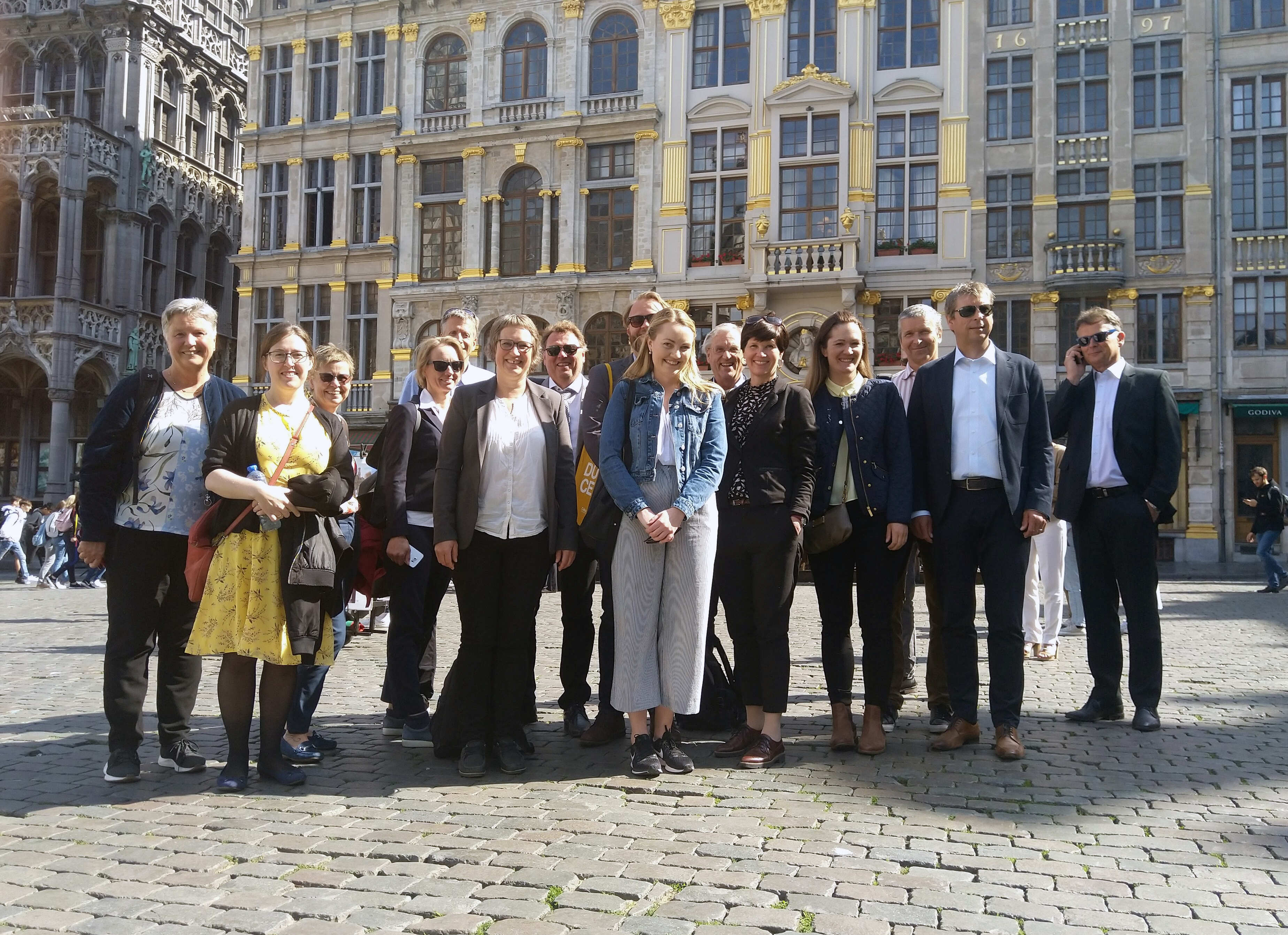 I desse dagane med val til EU-parlamentet og Brexit, var det naturleg å ta ein tur til Brüssel og besøke vår norske EU-delegasjon. Noreg deler skjebnefellesskap med Europa, 80% av eksporten vår går til EU og 60% av importen vår er knytt til EU-land. Det gjer at kunnskap om vår tilknyting til EU og korleis vi kan påverke viktige avgjerder er viktig for oss og for studentane våre. Samen med dei andre EØS-landa, betaler Noreg om lag 2,8 mrd. kroner (2014-18) som gjennom EØS-avtalen gir oss tilgang til EU sin indre marknad. Desse pengane skal gå til regionale utviklingstiltak i dei fattigaste landa i EU, og bruken kan påverkast av «givarlanda» gjennom forhandlingar. I tillegg til tilgang til den indre marknaden, gir EØS-avtalen oss ei demokratisk stemme i EU, Noreg får delta i utgreiingsarbeid og faglege diskusjonar som blir gjort som grunnlag for saker som skal handsamast i kommisjonen.