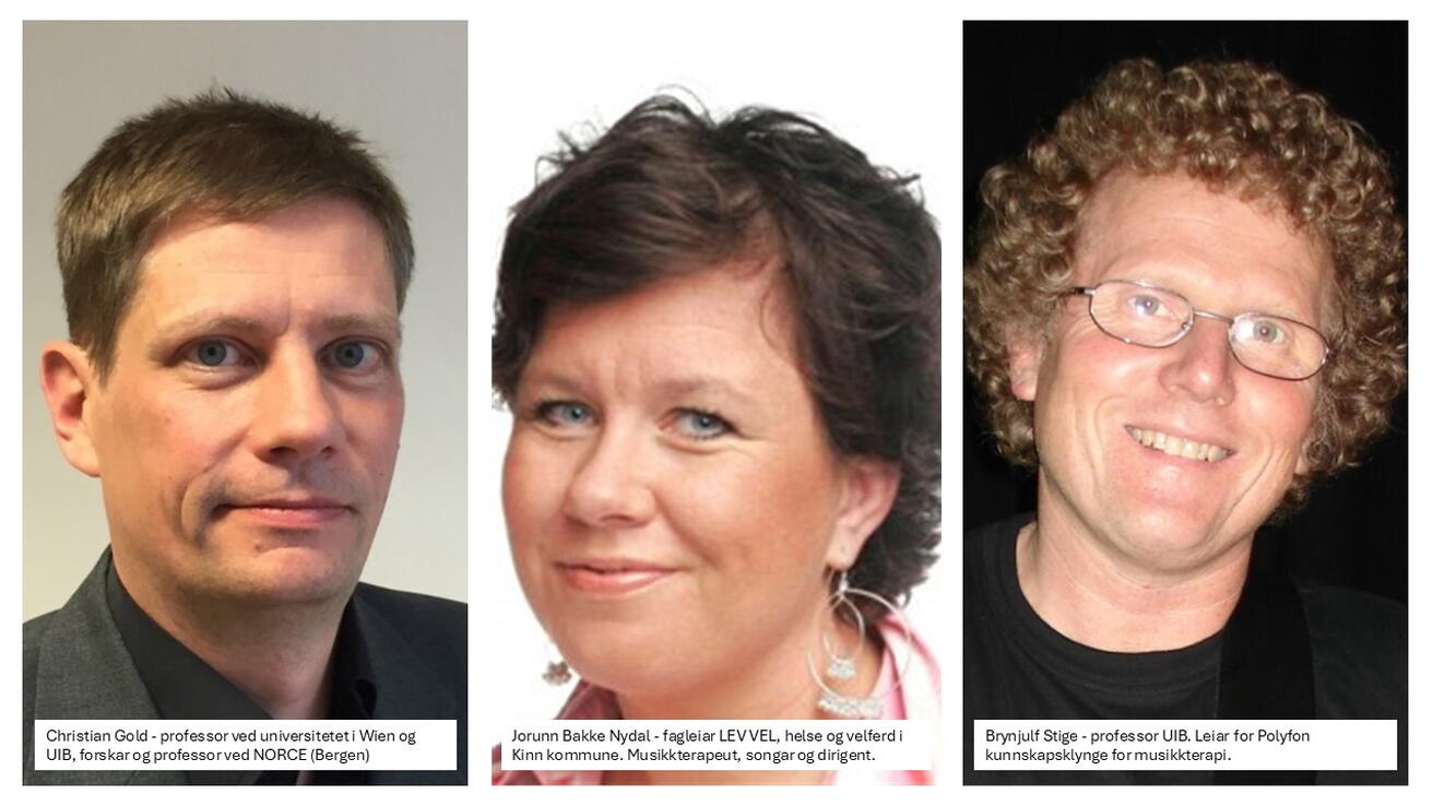 Blant foredragshaldarane er professor Christian Gold ved Universitetet i Bergen, som presenterer funn frå EU-prosjektet MIDDEL. Han har forska på korsong og musikkterapi, og på korleis dette verkar inn på demens.