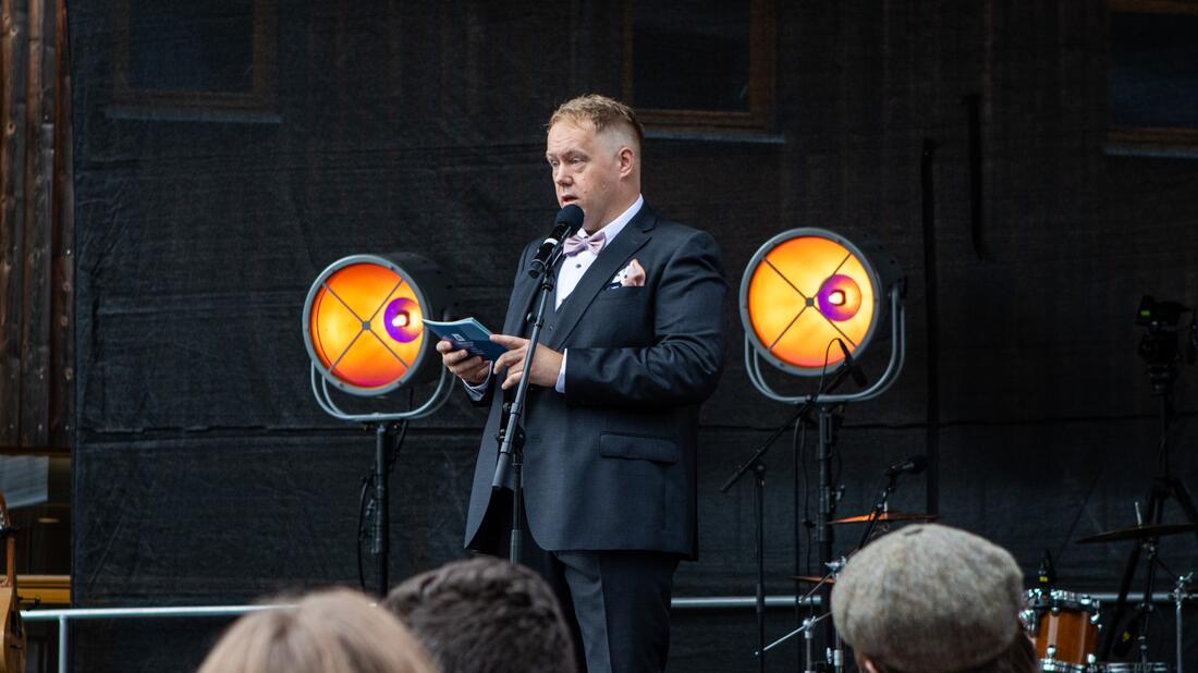 Han vart takka av for ein tale som spelte på gode følelsar og eit Volda der folk bryr seg om kvarandre. Takken fekk han frå Ammy Bolme som var konferansier under seremonien. Bolme er leiar for Studentparlamentet i Volda og hadde sjølv nokre velvalde ord å kome med på ein slik dag.