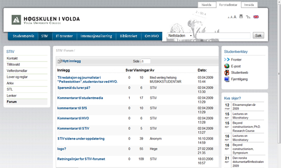 No har STiV oppdatert internettsidene sine, og dei vil i næraste framtid endre ein del på utsjånaden til nettstaden. Men viktigast av alt er det at STiV no ha relansert forumet sitt! Har du noko du vil seie om Høgskulen? Studentsamskipnaden? Andre tema rundt studentlivet i Volda? Bruk forumet til å formidle di meining, og STiV vil svare så snart som råd.