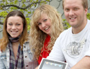 Informasjonskonsulent Helle Nærø, studentane Grete Forsmo og Øystein Bøe er godt nøgde med resultata i undersøkinga. Bøe er også den heldige vinnaren av ein I-pad som respondentane kunne vinne.