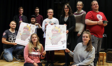 – Det er ikkje ei forteljing der ein står rett opp og ned. Vi tek i bruk teikneseriemiming, og medan ein fortel historia hjelper dei andre på scena med på å visualisere det som skjer. På den måten skal publikum kunne sjå føre seg korleis omgjevnadane der historia utspelar seg er og korleis alt gjekk føre seg, seier studentane.
