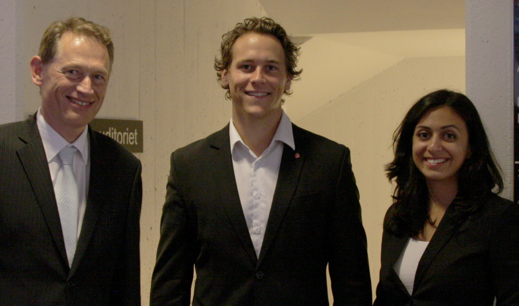 Rektor Per Halse, stortingskandidat Fredric Holen Bjørdal (Ap) og kulturminister Hadia Tajik.