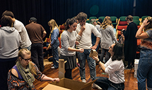 Fredag hadde Jiří og bachelorstudentene på andreåret laget klar scenografien til deres eksamensforestilling Den Skallete Sangerinne av Ionesco.