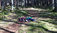 Nokre av studentane i Farkvamen barnehage gjennomførte estetiske opplevingar i skogen. «Kva ser vi, kva høyrer vi, kva luktar vi?». Foto: Septìna Selma Einarsdòttir.