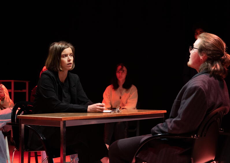 Teater og drama-studentane i Volda har tilgang på to store teatersalar med gode lysriggar, eige kostymelager og rekvisittrom som dei kan bruke når dei vil.